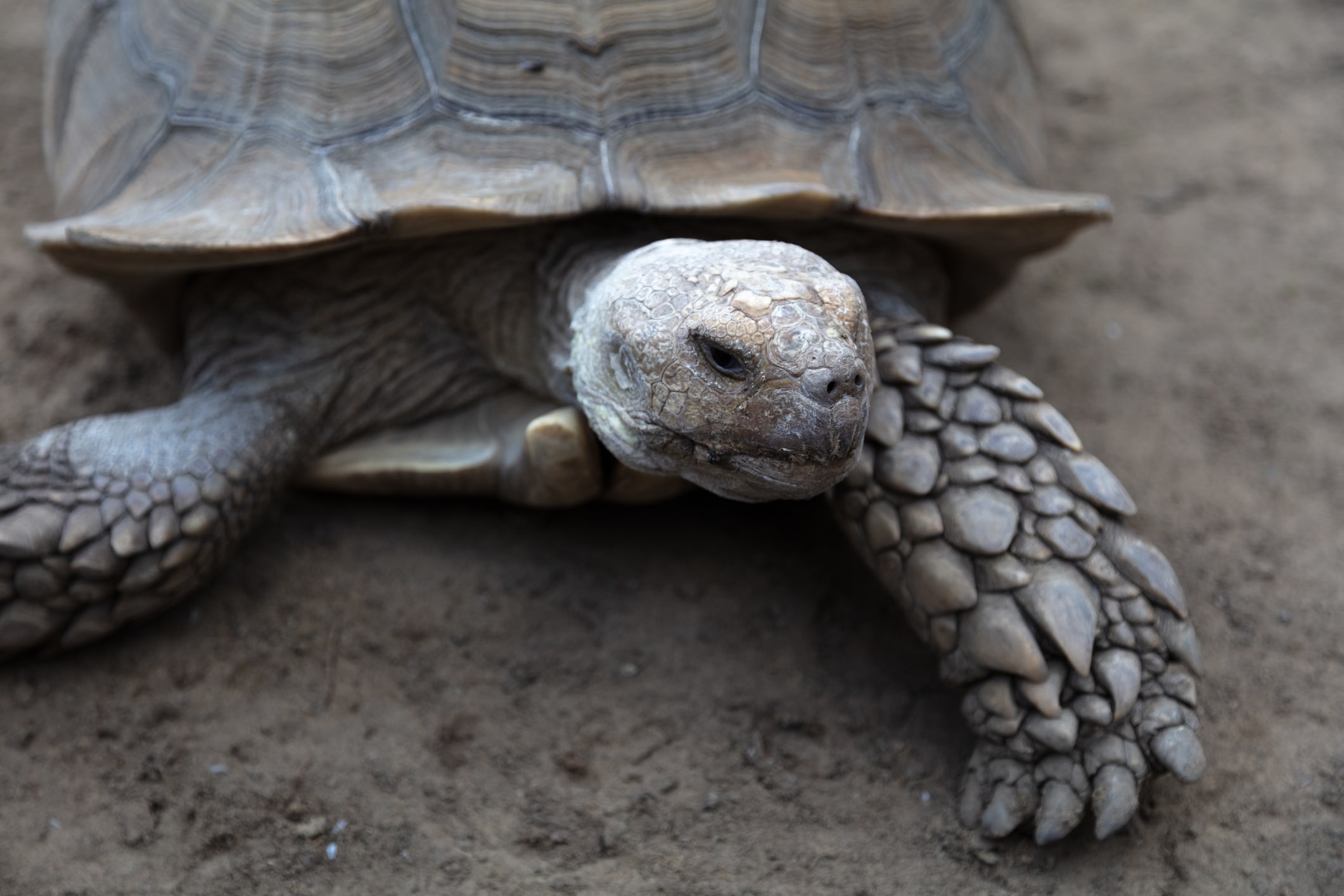 The African spurred tortoise is a herbivore and eats plants such as grasses, flowers and succulents such as cacti. However, thanks to its incredibly slow metabolism, this species can go for weeks without eating or drinking! When it does come to drink, the African spurred tortoise can drink up to 15% of its own weight.